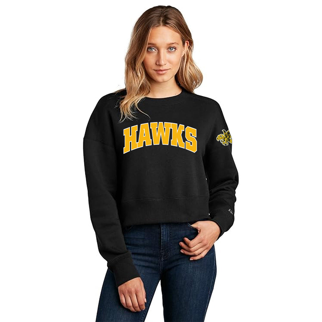 Iowa Hawkeyes Hawks Twill Decorated Women's Cropped Crew-Black